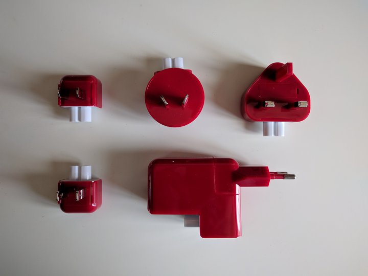 Le chargeur est livré avec plusieurs adaptateurs pour tous les types de prises. Le tout dans une petite pochette pour ne rien perdre.